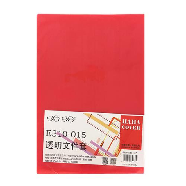 哈哈 L型透明文件套-紅/打 #F-E-015-R