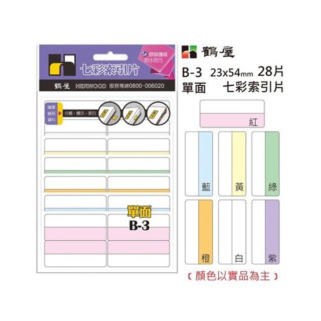 單面七彩索引片 23x54MM #B-3 鶴屋