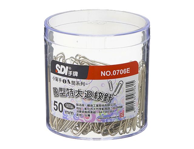 Facebook Line SDI SDI 圓型特大迴紋針 #0706E (50mm/150支/塑膠盒) 產品編號:4711734070615 透明塑膠盒裝,收納方便 網路價 NT${{ commaFormat(product.price_actu) }} NT${{commaFormat(product.price_sugg)}} 專屬特惠價 NT${{ commaFormat(product.group_price) }} 優惠價 NT${{ commaFormat(product.member_price) }} NT${{ commaFormat(product.group_price) }} 商品組合 {{k_row.name}} x {{k_row.qty}} {{k_row.intro}} {{sk_row.name}} 1) ? product.qty-=1 : product.qty"> {{ optionDisplayText('加入估價單購物車'); }} 追蹤商品 贈品 (買就送) {{ pItem.title }} 超值加購 {{ pItem.title }} 型號:{{ pItem.model }} 加購價 NT${{pItem.extra_price}} (原價NT${{pItem.price_orig}}) 限購{{pItem.overQty}}件 加購數量 已搶購一空 商品內容 商品規格 購物說明 包裝方式 :150支/塑膠盒,24盒/內箱,48盒/箱產品特色 :透明塑膠盒裝,收納方便規格尺寸 :50mm 本站為商品目錄展示與估價網站目前暫不開放線上直接訂購如有使用上的問題,請洽詢各門市的LINE客服謝謝您!