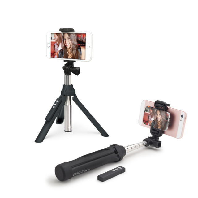 - 不鏽鋼材質,自拍桿結合腳架設計,藍牙遙控器與自拍桿本體可分離使用