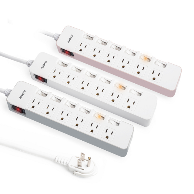 RASTO FE6 七開六插三孔延長線 1.8M-灰