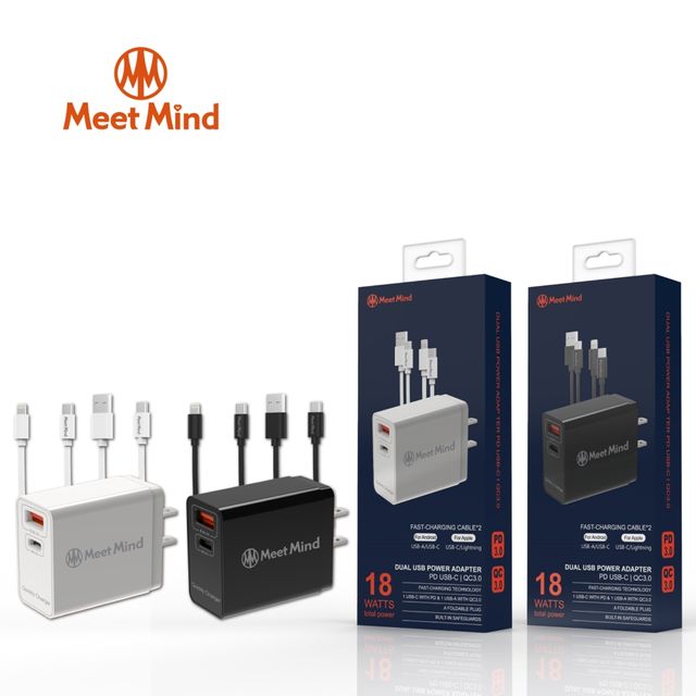 品名:MM 平優系列PD/QC 18W 雙孔雙線充電組(1A1C )黑
