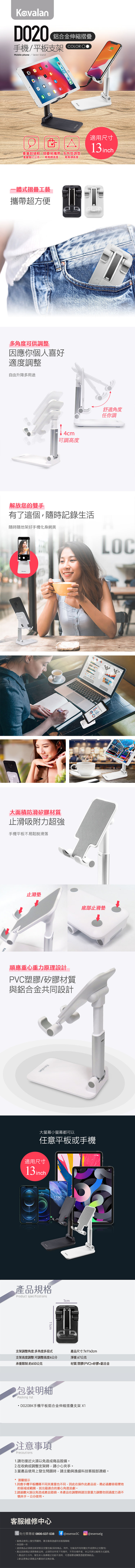 手機平板皆可通用,可調高低、可調角度